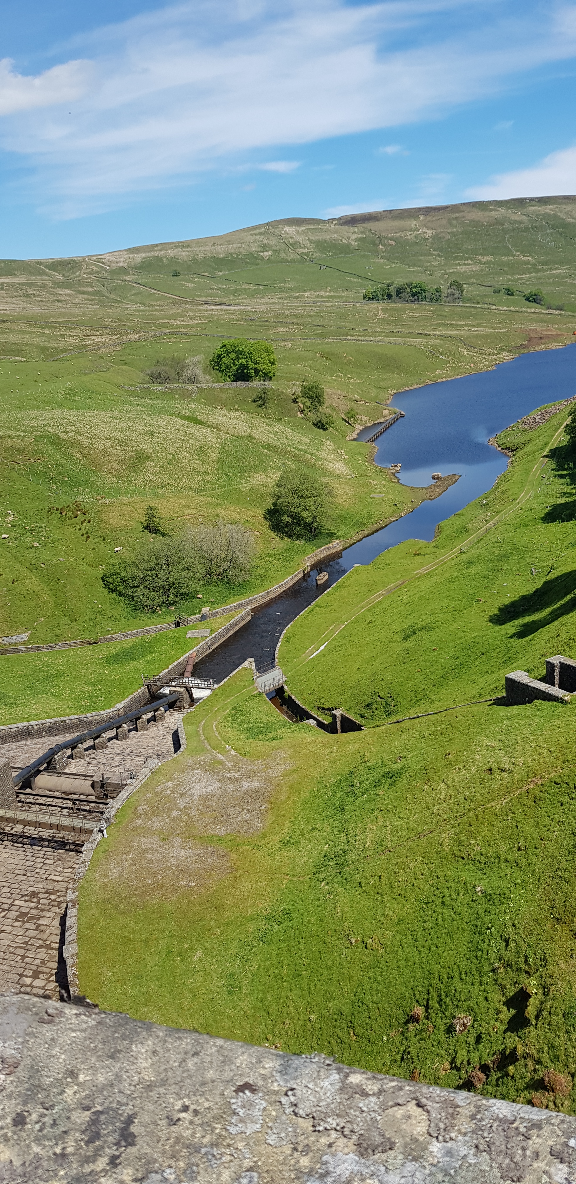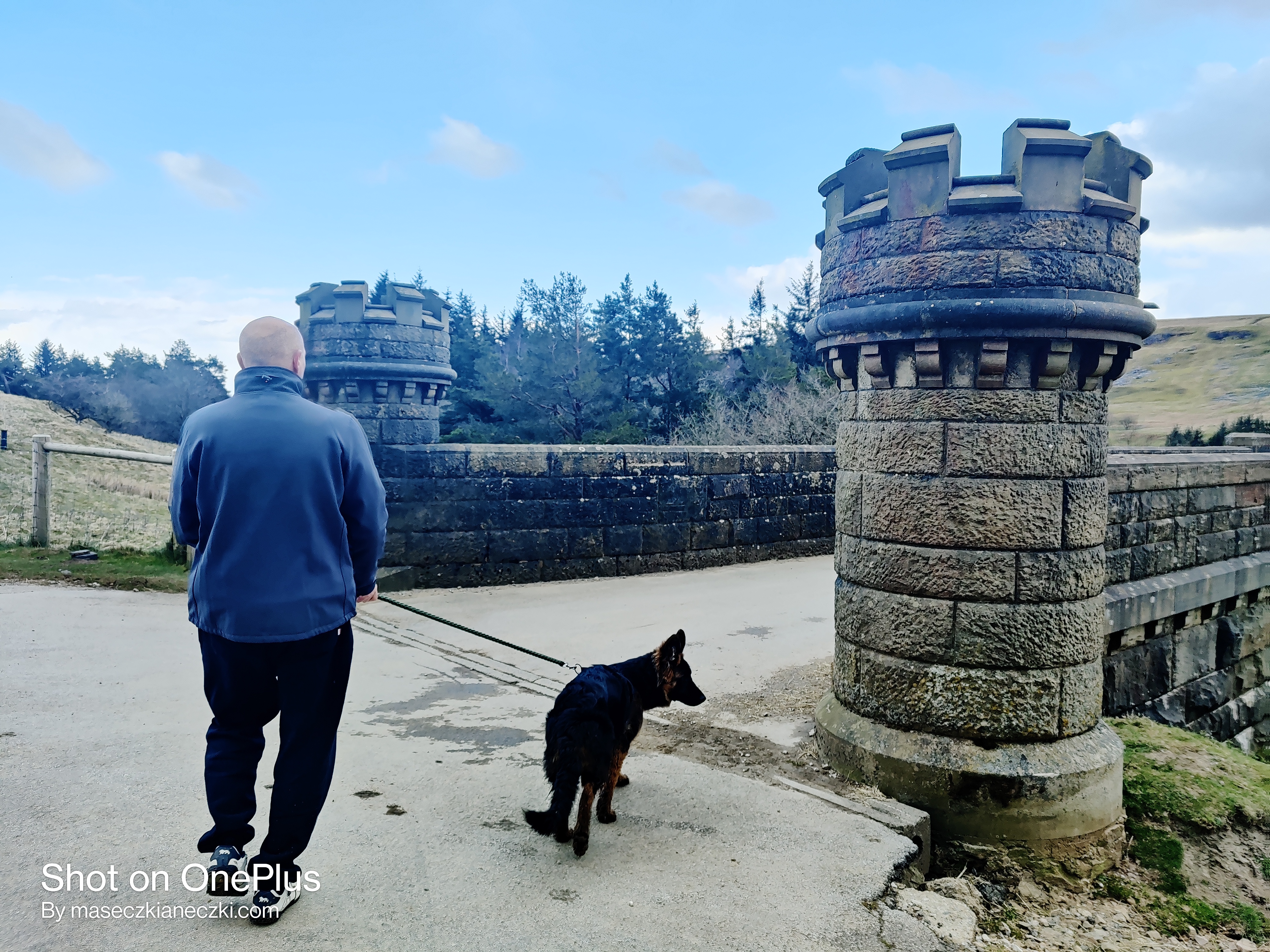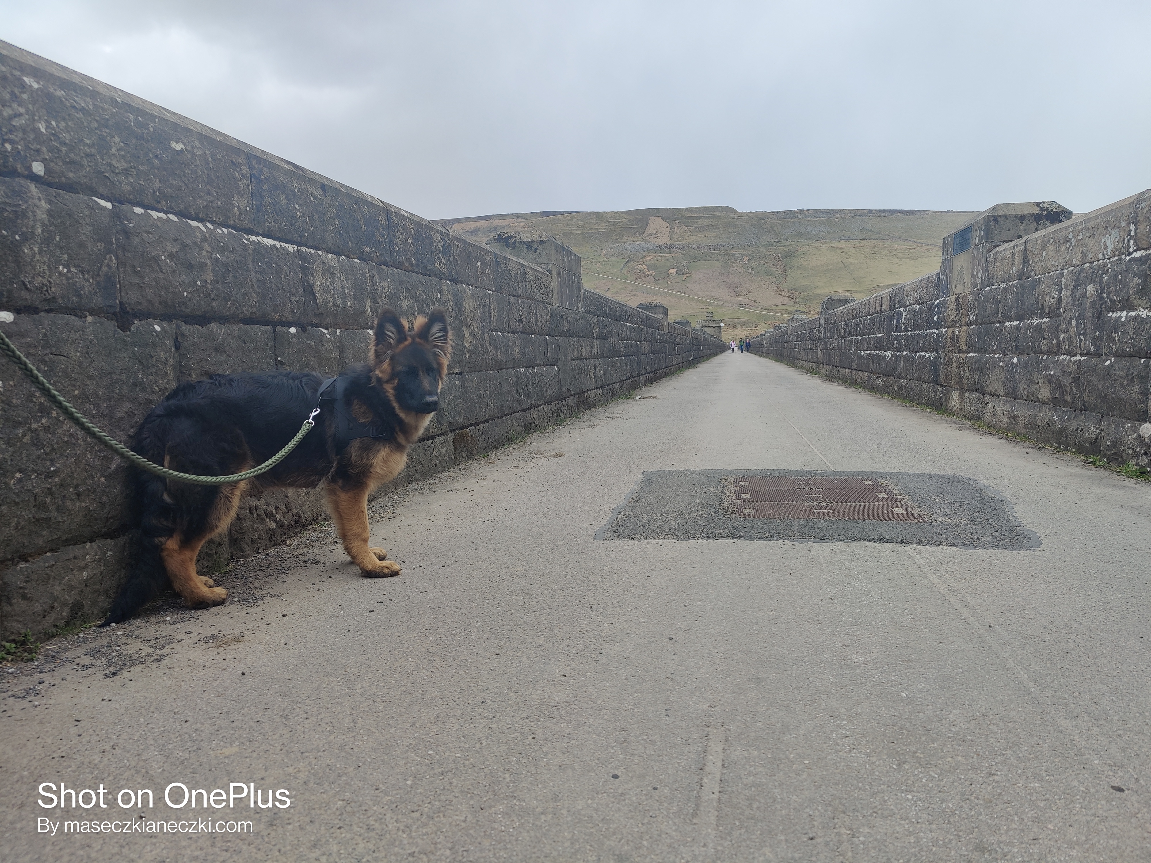 Głupie pytanie 😀 Ten wpis oczywiście by nie powstał gdyby nie można byłoby jechać tam z psem. Czworonogi oczywiście mile widziane, jednakże należy trzymać je na smyczy, ponieważ jak widzicie na zdjęciu, tamy te otoczone są wzgórzami i polami, na których pasą się owieczki. Henry podczas drugiej wycieczki w czerwcu wyrwał nam się z pięciometrową smyczą i pognał za owcami. Zbiegł 30 metrów w dół za nimi i ślad po nim zaginął! Myślałam, że to już koniec. Po psie! Jednakże po jakimś czasie stojąc nad brzegiem urwiska zauważyłam stado pędzących owiec, za nimi Heniek i falującą pięciometrową czerwoną smycz za nim. Kamień z serca mi spadł ale zaraz pojawił się inny problem! Jak go przywołać? Na szczęście usłyszał nasze wołanie i pomału zaczął się wdrapywać na górę. Owce padnięte, pies padnięty, nasze nerwy w strzępach i słońce, które wyjątkowo tego dnia było łaskawe. Szczęście w nieszczęściu polegało na tym, że nie było farmera. Pamiętajcie, że Anglicy mają prawo strzelać do psów w sytuacji, kiedy te zagrażają ich stadu!