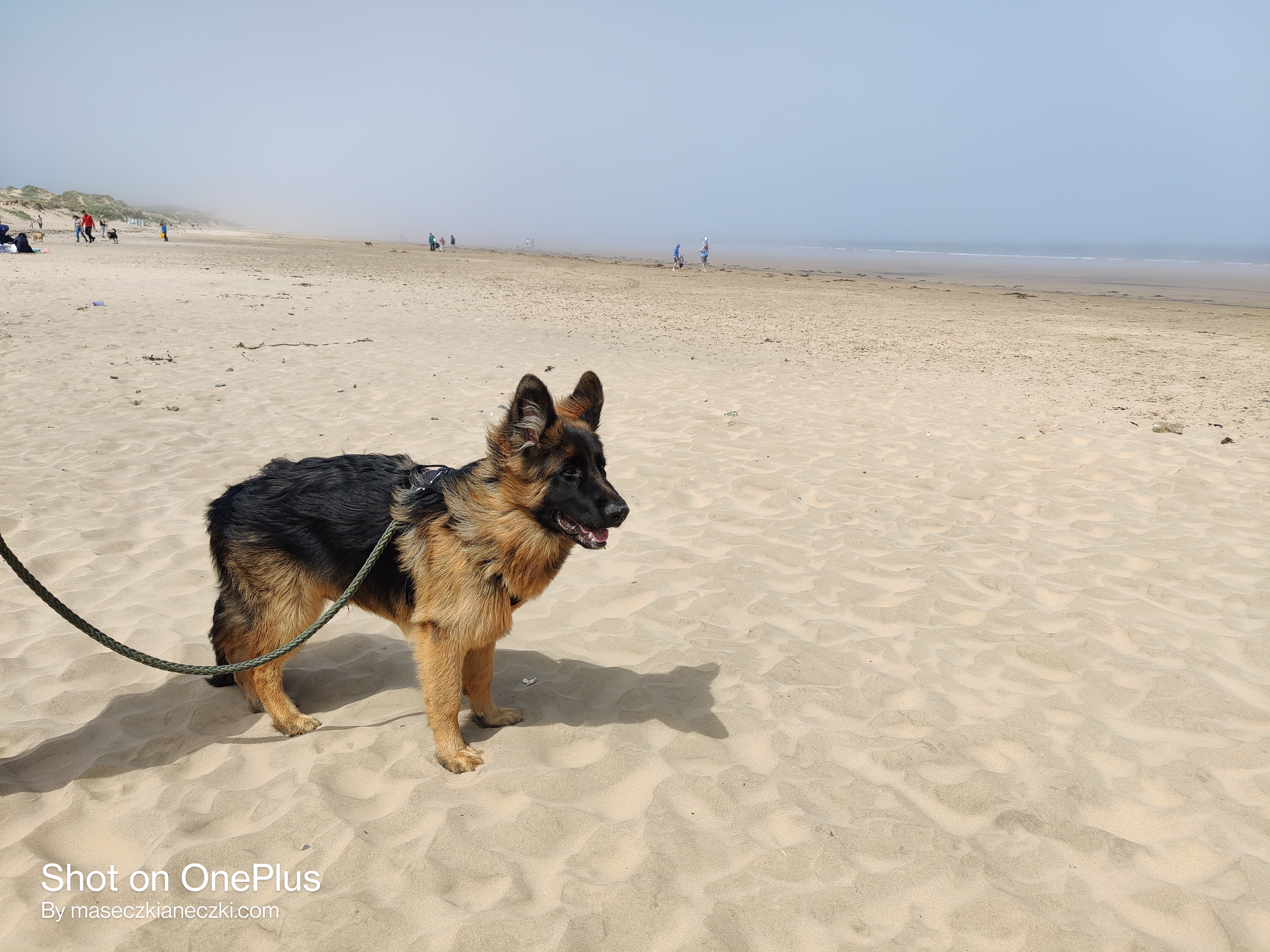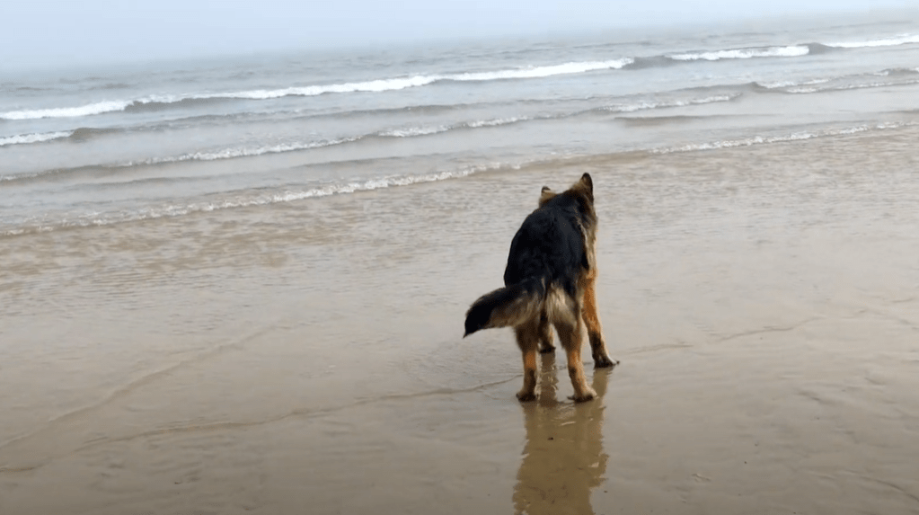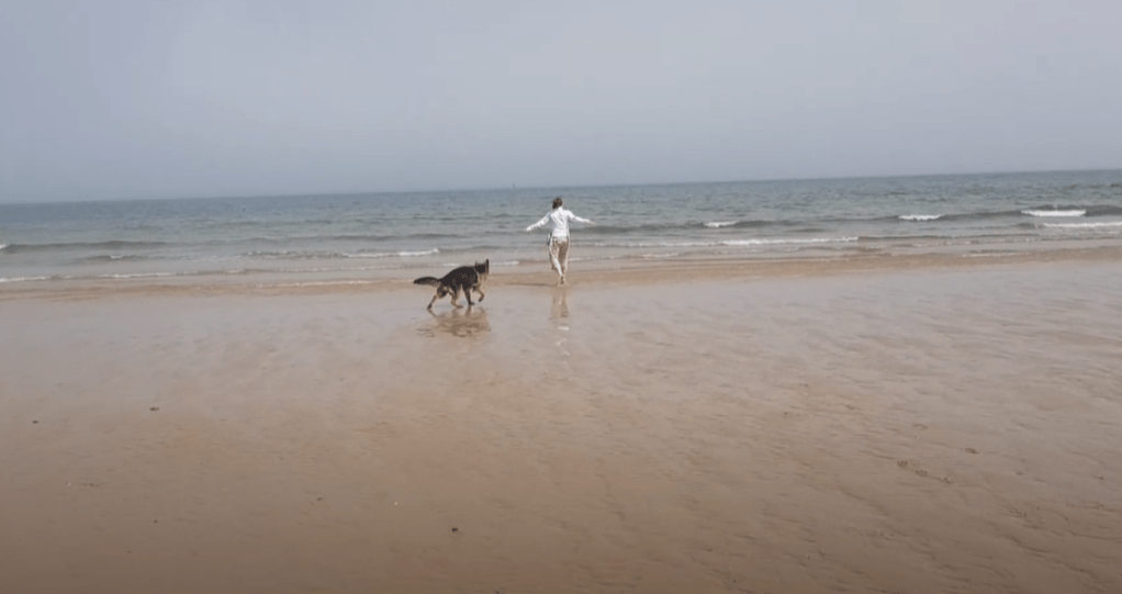 Henry przyjechał do mnie 07 marca 2021, niedługo po tym jak zdołał już się oswoić z nową rodziną udaliśmy się do Druid’s Temple, przefantastyczne miejsce, które opisałam w poprzednim wpisie. Minęły dwa miesiące i zaryzykowaliśmy podróż nad wspomnianą ogromną plażę. Była piękna wiosna … a właściwie początek zapowiadającego się wspaniałego lata. Ubrałam się adekwatnie do pogody jaka panowała tego dnia, czyli w letnią, zwiewną sukienkę i cienką, prawie tak cienką jak naleśniki mojego taty, kurtkę! Zapakowaliśmy Heńka na pokład blaszanego rumaka i ruszyliśmy w dość długa podróż na wschodnie wybrzeże Anglii. Owczar spisywał się … znośnie! Dramy nie było ale żeby był spokojny tego też nie mogę powiedzieć. Kiedy jakoś udało nam się dojechać na miejsce okazało się, że pomimo iż był to wtorek około południa to i tak nie było wolnych miejsc i musieliśmy chwilę czekać na to żeby się jakieś zwolniło. Po wyjściu z samochodu doznałam prawdziwego szoku! Na śmierć zapomniałam, że w 99% przypadkach kiedy jadę nad Morze Północne to … ohydnie wieje chłodnym wiatrem. Tak też było i tym razem! Nie minęło kilka minut jak zdążyłam przemarznąć do szpiku kości. Jedynym szczęśliwym osobnikiem, który nie zważała wcale na chłód był oczywiście dzielny, pięciomiesięczny owczarek Henry!