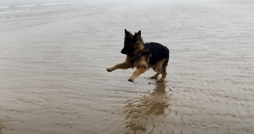 Nawet nie jestem w stanie opisać Wam tego ataku radości w jaki wpadł Henry widząc na raz tyle piasku (wody jeszcze na ten moment nie zauważył :D) Biegał jak szalony! Oczywiście kupę ze szczęścia też zrobił! Aby się rozgrzać zaczęłam również i ja biegać razem z nim (OK, głównie zaczęłam biegać za nim bo uciekał do innych psów) 😛 W życiu nie sądziłam, że piasek pod pazurkami psa może sprawić tyle satysfakcji.